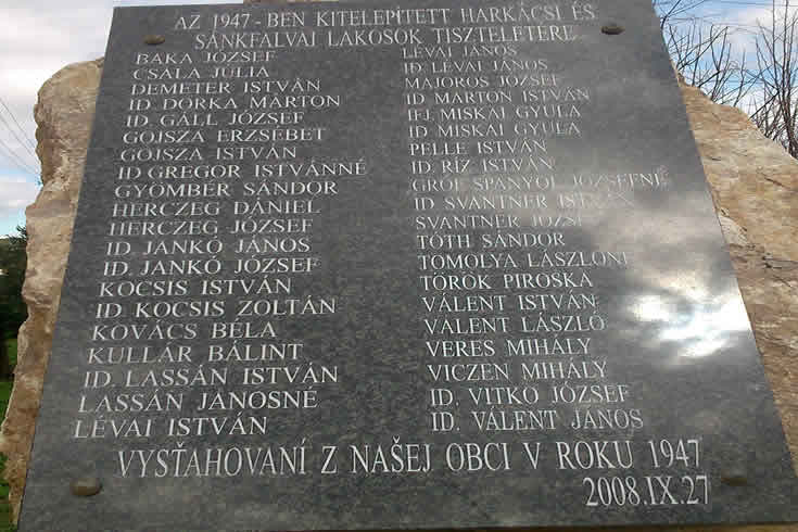 Az ünnepi szentmise után koszorúzásra került sor a kitelepítettek emlékére felállított emlékkőnél. A résztvevőket és a még élő kitelepített idős embereket köszöntötték a település elöljárói és fiataljai. Majd történelmi előadás hangzott el a szomorú és tragikus eseményekről. Idézetek a dokumentumokból: „40 ezer felvidéki magyart deportáltak a cseh Szudétákba"; "36 ezer pozsonyi, kassai, komáromi magyart internáltak, lakásaikat elkobozták"; „327 ezer magyart szlováknak nyilvánítottak"; „181 ezer magyart ítéltek bűnösnek"; „76 616 magyart vagoníroztak és Magyarországra zsuppoltak"…